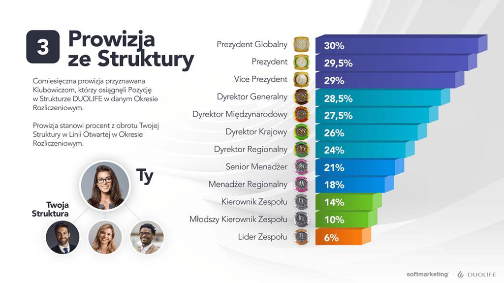 Awans w MLM to klucz do sukcesu. W planie wynagrodzeń DuoLife 2025 każdy awans oznacza: