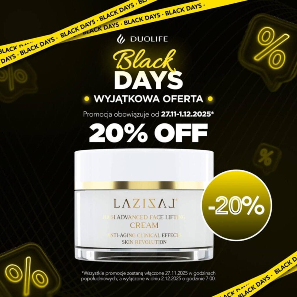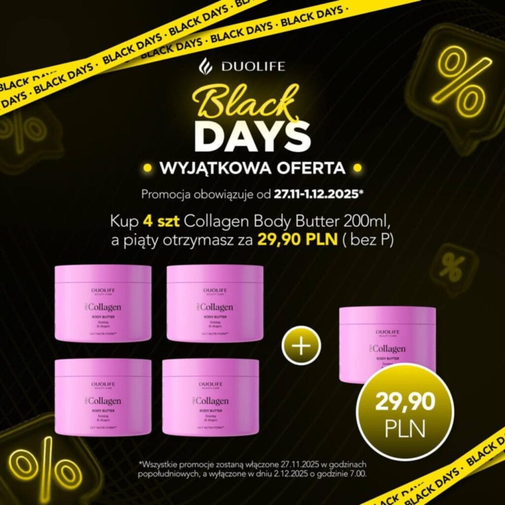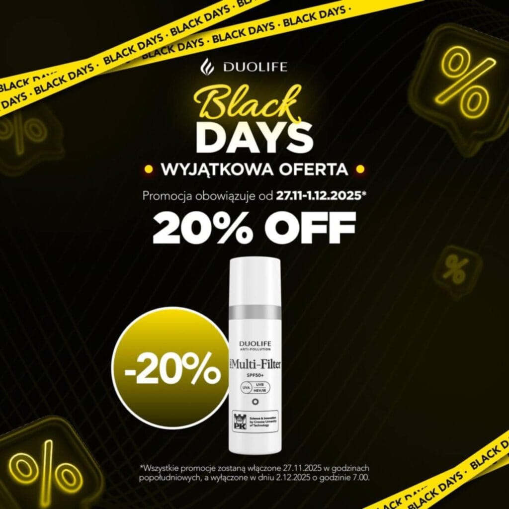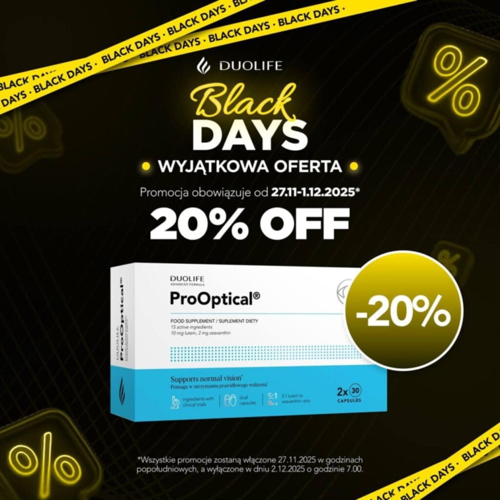 Black Week w DuoLife to idealny moment, by zadbać o zdrowie, uzupełnić zapasy suplementów i przetestować produkty, które od dawna masz w planach. Tegoroczne promocje są wyjątkowo atrakcyjne — zniżki naliczane są automatycznie, więc kod rabatowy nie będzie Ci potrzebny.